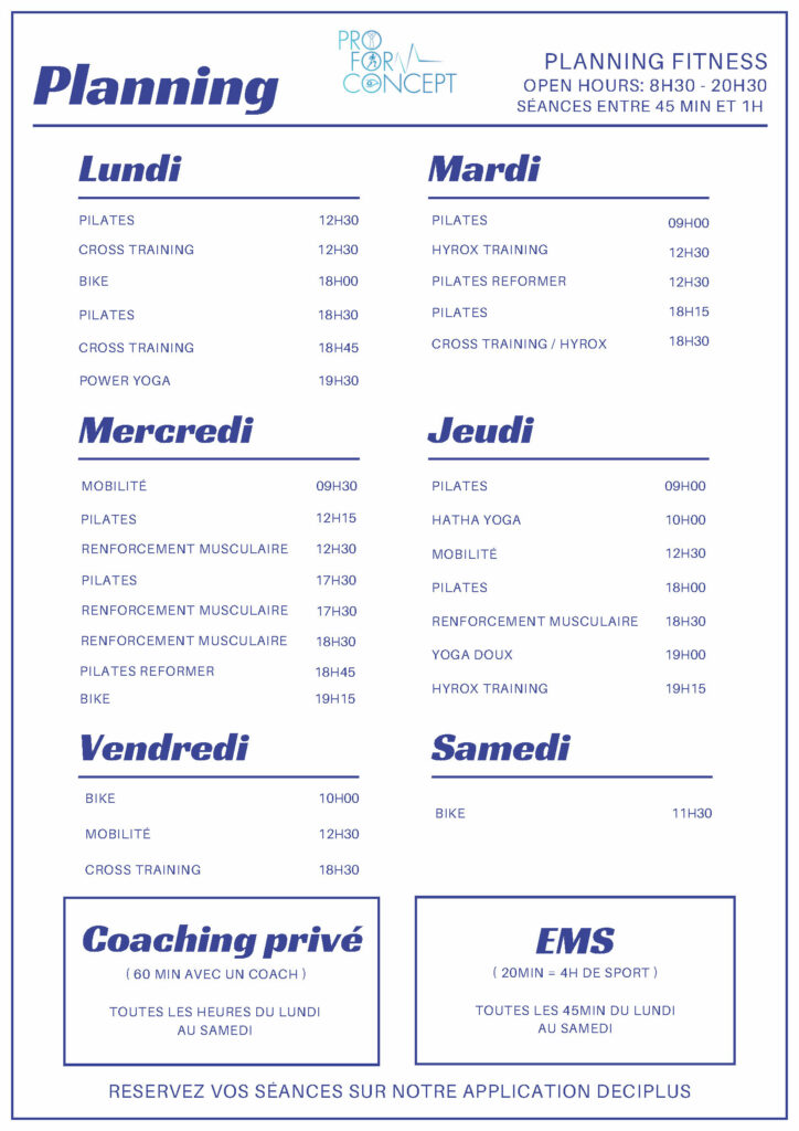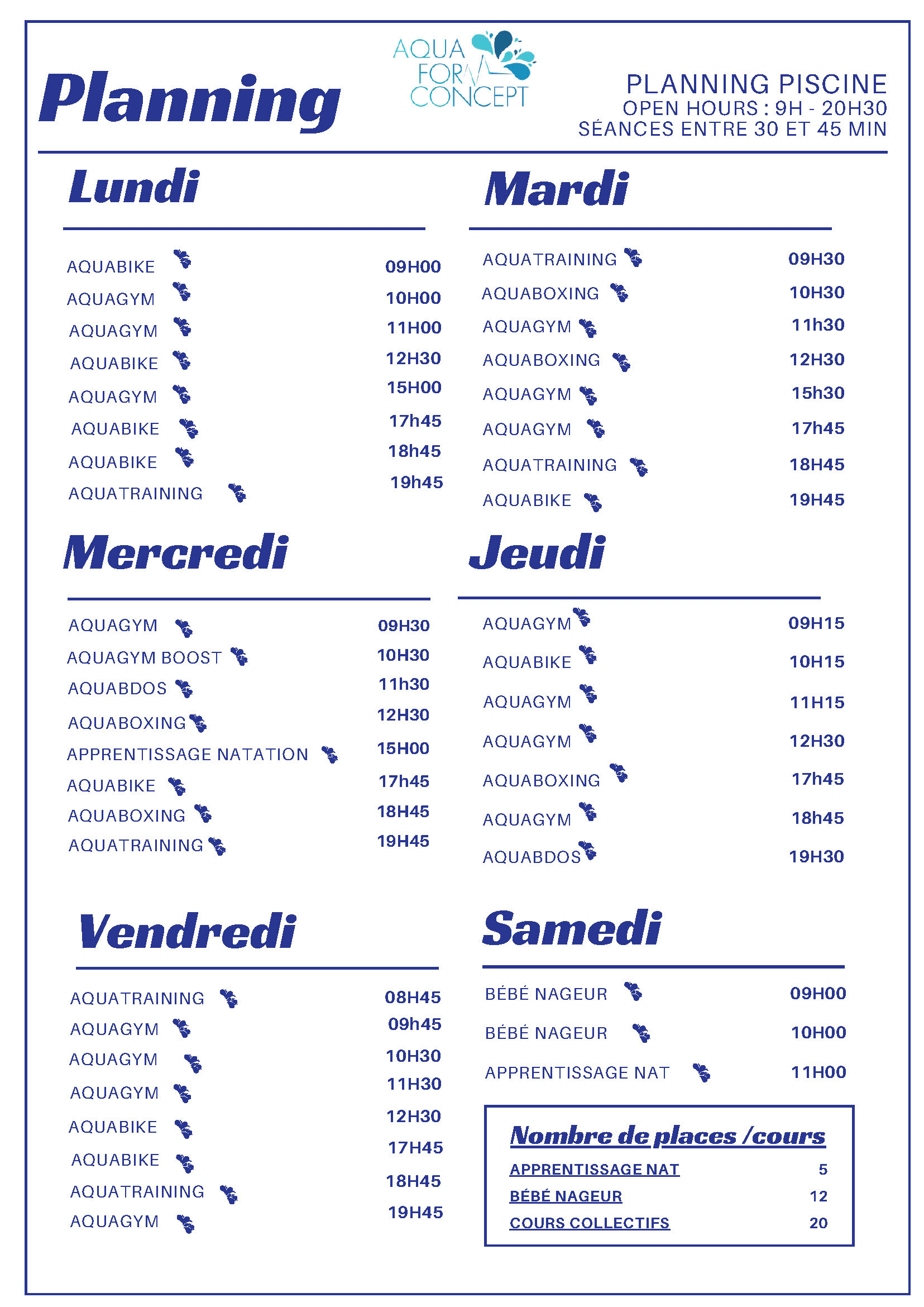 Découvrez les plannings des cours collectifs et des activités aquatiques